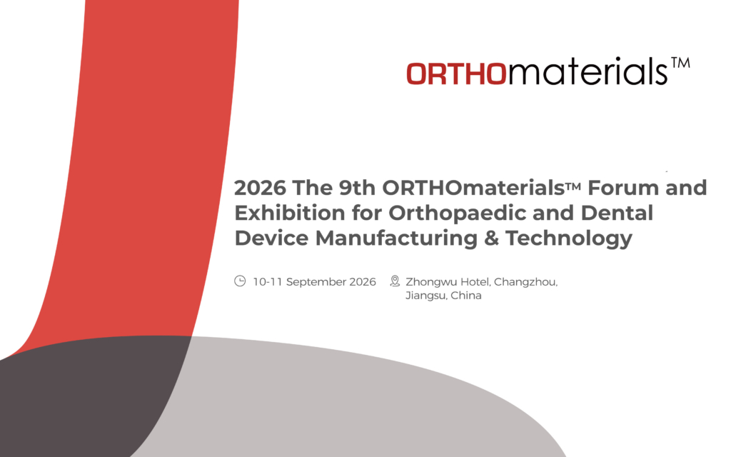We are thrilled to share the details for the 9th ORTHOmaterials™ Forum for Orthopaedic and Dental Device Manufacturing & Technology, which will took place on September 10th and 11th, 2026, in Changzhou, China. This two-day event brought in 2025 over 100 exhibitors and 1500 enthusiastic participants for a remarkable showcase of innovation and collaboration.